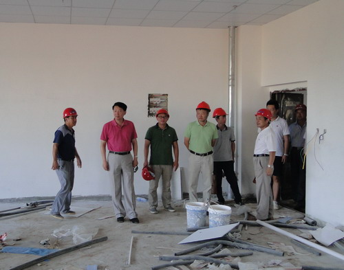 郑书记指出,通过现场察看,虽然因天气等原因工期比计划有所推迟,但总体进度不错,他对此比较满意。郑书记强调,整个暑期,基建处同志大家战高温,斗酷暑,放弃休息,坚守工地,非常不容易,在此向大家表示感谢。