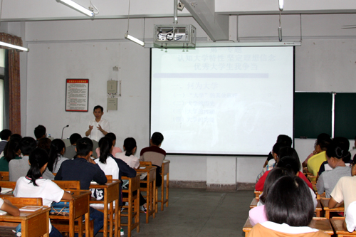 “同学们,祝贺你们步入大学生活。大学是通往知识殿堂的阶梯,是培养人才的摇篮。三十多年前,我也和你们一样,背上背包,一手抱着被子,一手拎着水桶走进大学校园……”没有刻板的铺陈,赵伟书记三言两语间就拉近了跟同学们的距离。从亲切的问候开始,从自己亲身经历过的一个个幽默风趣的大学生活片段开始,赵伟书记将“如何认识大学”、“大学的基本特点”、“争当优秀大学生”三个专题一一讲授、娓娓道来。他不时和同学们交流互动,倾听大家对大学的认识和感受,通过讲述生动的真实案例引导同学们提高独立生活能力,树立新的学习理念,养成良好的学习、行为习惯,争做德才兼备、全面发展的当代大学生。
