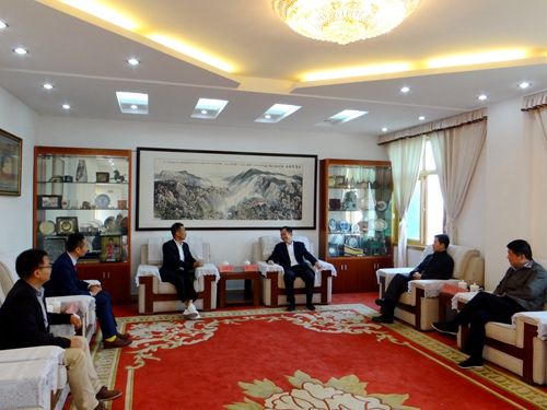 报告会前后,校党委书记赵伟、校长刘晓东分别在行政楼会客室热情会见了王国安校友一行。校党委副书记魏立平、副校长夏启国参加会见。