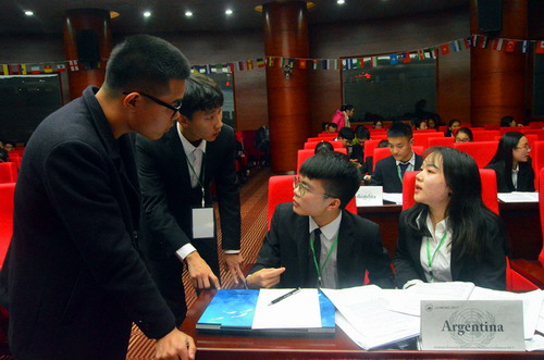 11月30日,由校团委主办的第一届模拟联合国大会开幕式在我校逸夫报告厅举办。校党委副书记魏立平出席开幕式并讲话。学生处、校团委、外国语学院负责人及19支代表队和留学生代表、外语爱好者共计200余人参加了开幕式。