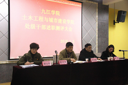 1月3日下午,土建学院在望庐楼101会议室和315会议室分别召开处级干部述职测评会和党委民主生活会。夏启国副校长参加会议并讲话。组织人事部副处级组织员夏英、劳资科副科长朱俊松,土建学院领导班子成员和全体教职工参加了述职测评会,述职测评会由夏英主持。
