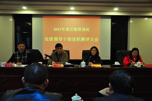 述职测评会上,后勤管理处党委书记张红涛、处长姜东升分别代表后勤管理处党委和行政对2017年工作进行了总结汇报,并就个人年度工作进行了述职述廉。其他处级领导干部先后结合2017年度各自的工作分别进行了述职述廉。后勤管理处全体干部职工根据每位处级干部一年在“德、能、勤、绩、廉、洁”等方面的表现认真填写了测评表。