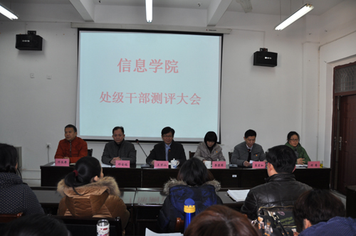 1月11日上午,信息学院分别在文友楼424和514召开2017年度处级干部述职测评会和党委民主生活会,学校党委委员、副校长王万山到会讲话,党校常务副校长兼组织人事部副部长李苏琴、组织人事部职称科科长张杨帆参加了会议。