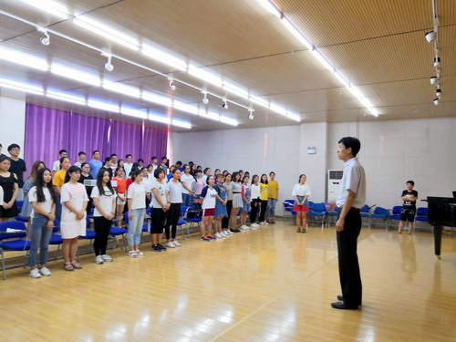 6月6日晚,副校长查振华来到艺术楼排练厅,看望慰问在这里紧张排练的大学生业余合唱团,校团委书记闫来英陪同看望。