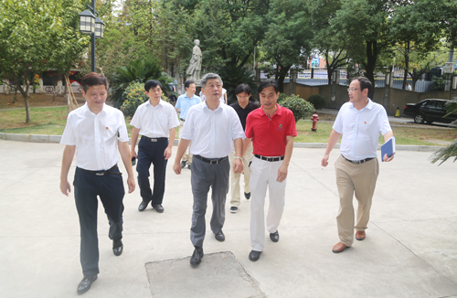 刘校长一行先后到原长运公司候车用房,临床医学院/附属医院新大楼建设工地、消化病研究所等地进行实地走访调研。在原长运公司用房处,了解临床医学院/附属医院租赁用房事宜,听取前期该用房的设计布局以及附属口腔医院搬迁准备工作汇报。在新门诊综合大楼基建工地,刘校长仔细询问了大楼建设进展情况。他指出,要抓紧工程进度,尽早投入使用,为九江市民造福祉。在九江学院消化病研究所,刘校长一行认真听取了临床医学院/附属医院消化内科蔡长春主任所作的研究所工作汇报,以及殷小平副院长对科研工作的下一步安排。刘校长要求该院找准研究方向,借助现有条件基础,借力借势,寻求突破,学校也将对科研平台建设予以大力支持。