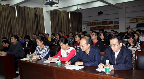 廖亮教授三十年来一直从事高校教学与科研工作,曾获得国家优秀教学成果二等奖和江西省优秀教学成果二等奖,主持国家基金项目4项和省级科研项目7项。讲座中,廖教授首先对大学教师的职业进行了定位,他认为作为一名合格的大学教师,先是老师,再是学者,因此教学与科研将相伴整个教师的职业生涯,关系到教师的生存与发展。接着廖教授回忆了他在江西农大学习和工作期间,对他影响至深的三位老师,从而确定了自我的奋斗目标。他觉得好老师可以影响学生,甚至影响一批学生的一生,这就是教师的价值所在。最后,廖教授结合自身的工作经历,分别阐述了如何进行教学研究和科学研究。对于教学研究,他认为一名教师的成长,要经过“授之以鱼、授之以渔、授之以欲”三个层次,最终达到把教学作为一门学问来研究,在教学过程中细心观察,发现并针对教学中的重要问题,坚持不懈地进行教学方法改革,创新教育模式,激发学生学习和创新的欲望,从而提高学生的学习效果这一目标。对于科学研究,他从选题、方法及素质培养、让科研成为一种生活内容和习惯,这三个方面进行了详细的分析与讲解,鼓励在座教师珍惜光阴、把握机会、勤做科研,只有做科研,才能对所学学科有更深刻的理解,教学才有高度,才能更好地进行教学。