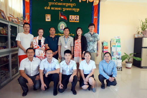 帅式毅先是送新任志愿者余洲、钱海乔到访茶胶省青年联合会汉语中心,受到了茶胶省青年联合会秘书长兴索昆(Mr. Heng Sokun)的热情接待。兴索昆介绍了茶胶省青年会的基本情况,茶胶省青年会成立以来,专注于本省青年的职业培训,先后开设了电脑课程、英文课程、高考补习班,相信将要开设的中文课程会受到青年会成员的欢迎。帅院长表示将加大茶胶省青年联合会汉语中心的建设,希望两位汉语教师志愿者教师平时没有中文课的时候来青年会从事志愿者工作,有可能的话还可以帮忙计算机和英文课的教学。
