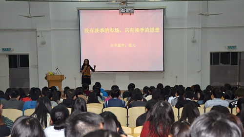 报告会上,张元从中国网络购物市场现状、行业竞争分析、高效推广计划实施、数据分析理性调整方向等四个方面,深入浅出、形象生动地与大家分享了面对当前互联网如此庞大的海量信息和残酷竞争,企业如何做好全网营销、走出“淡季”困惑的经验和建议,同时,张女士还就学弟学妹们如何提升就业综合竞争力进行了交流。