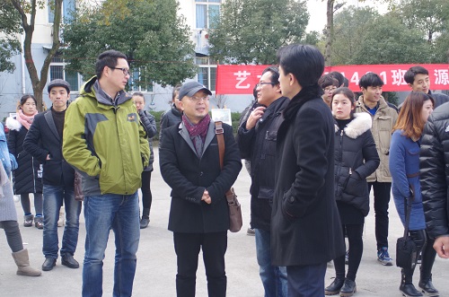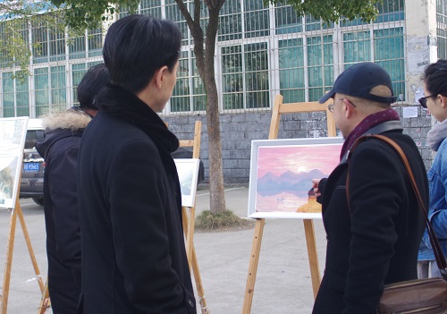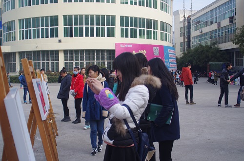 12月18日中午,艺术学院在学校三食堂前举办A1481班婺源写生艺术作品展,院长吴维勇、党委书记王春生、副院长虞斌、党委副书记沈杨以及教务科、学生科、团委负责人和部分老师和同学共同参加了此次婺源写生艺术作品展。