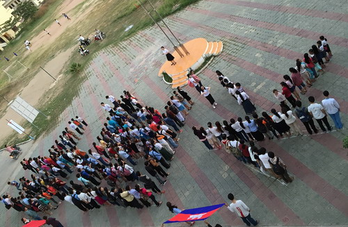 孔子学院的学生,从刚刚开始接触汉语1A水平初学者,到已经学习汉语五六年的4年级学生,从年仅六七岁的孩童到四五十岁的中年学员,大家在各自班级老师的带领下,一同站在孔子学院大楼——芳华楼门前,用身体拼出了汉字“六周年”。在队伍的最前方,有八名学员分别举起柬埔寨国旗与中国国旗。随后,大家异口同声地喊出了:“孔子学院六周年生日快乐”的口号。正是这样一批批师生共同见证了王家研究院孔子学院从建立之初遭遇的风风雨雨,到如今这六年后的成长与壮大,大家对孔子学院的爱与感激可以在面对镜头的张张自信与感动的笑脸中展现出来。