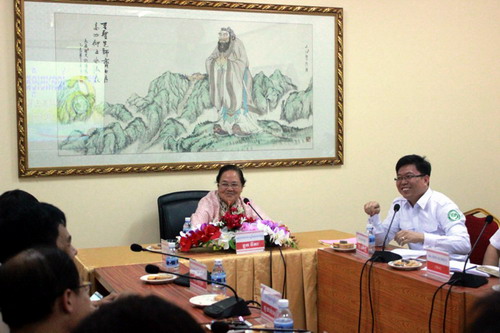 12月22日孔子学院六周年庆当天,柬埔寨王家研究院孔子学院在柬埔寨参议院会议厅举行了6周年庆典暨 “ ‘一带一路’连锁效应” 国际圆桌会议。柬中友好协会会长、柬埔寨宪法理事会主席艾森沃阁下(HE Mr. Ek Samol),九江学院副校长杨耀防教授,中国驻柬埔寨大使馆政治处程洪波主任出席会议。程洪波主任对柬埔寨王家研究院孔子学院成立6周年表示了祝贺,对孔子学院6年来的工作成果给予了极大的肯定。下午,孔子学院师生在孔子学院本部大楼举行庆孔子学院成立6周年座谈会。柬埔寨王家研究院院长、孔子学院理事长克洛媞达院士(HE KHLOT Thyda),索安(SOK An)副总理助理德沈纳院士(HE TECH Samnang),王家研究院副院长逊春文院士(HE SUM Chhum Bun)等参加了座谈会。座谈会上,大家共同观看孔子学院6周年宣传片、五湖四海祝福孔子学院视频集锦,克洛媞达院士、谢莫尼勒院长发表了重要讲话,对孔子学院未来工作作了展望。