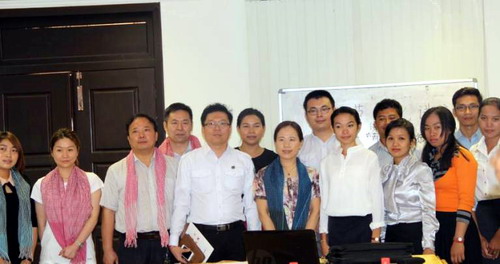 谢莫尼勒院长向客人介绍了孔子学院暹粒吴哥高中孔子课堂和暹粒省政府汉语官员班的发展历程,并在汉语课堂作了《中国“清明节”与柬埔寨“亡人节”》比较的文化讲座,来宾和学员对谢莫尼勒院长了解中柬文化之深表示佩服与惊叹。