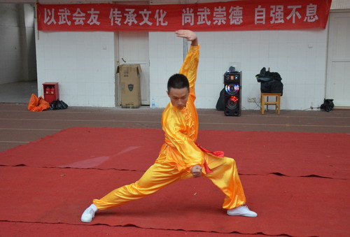 活动伊始,本次活动的负责人张鹏说:“中国武术是中华传统文化的重要一环,是我国民族体育的主要内容之一,是几千年来国民用来锻炼身体和自卫的一种方法,被视为中国文化之精神,故又称国粹。”用简洁的语言为大家简单介绍了武术在中国人生活中的作用。接着,两位同学为大家带来歌曲《情非得已》和原创吉他曲,在观众热烈的掌声中,本期“行知雅集暨传统武术竞赛”活动顺利开幕。