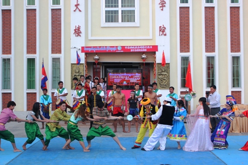 4月1日,孔子学院组织参加的柬新年系列庆祝活动拉开大幕。孔子学院和柬埔寨文化艺术部主办,柬埔寨青年会、国家语言委员会和中国文化之家协办的 “柬新年传统民俗文化体验活动”在孔子学院大楼上演,柬中师生喜迎柬埔寨新年、共促两国文化艺术交流。活动分为新年祈福、文化讲座、节目展演、文化体验及柬埔寨美食品尝等,展示了柬埔寨新年传统庆祝活动的全过程。