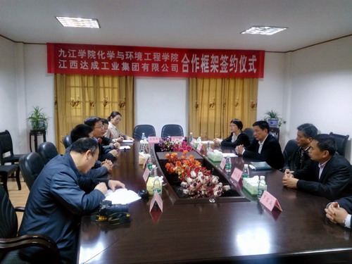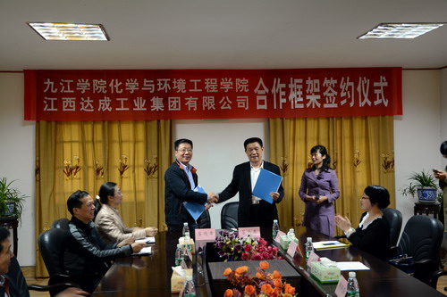 会上,还举行了九江学院化学与环境工程学院-江西达成工业集团合作框架协议及实习实践基地协议的签约仪式,仪式后,双方在集团正门进行了实习实践基地的挂牌。