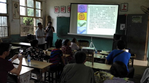 健康扶贫是基础。佛坳村交通不便、医疗卫生资源有限,村民健康知识缺乏、就医困难,因病致贫是佛坳村贫困的重要原因。为此,副主委汪文丰、医卫支部主委彭桂清带领送医义诊团队开展送医送药送健康活动。夏晓蓉儿科主任医师、秦穆英心理健康咨询师、张萍皮肤科主任医师、邹小新呼吸科副主任医师、聂鹰外科副主任医师、董俊内分泌科副主任医师、温鹏程心血管科主治医生、何青平主管护师等为佛坳村村民开展送医义诊、免费送药和健康咨询。义诊期间,董俊主任医师做了“糖尿病预防和治疗”的健康讲座。针对佛坳村村民癌症多发情况,杨平华博士主动收集佛坳村多个水源样本带回九江学院分析测试中心进行水质检测,分析癌症诱发病因。送健康活动如及时雨,受到当地村民的热烈欢迎,反响极其强烈。