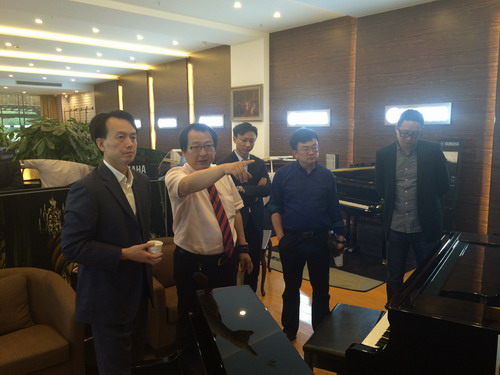 应雅马哈乐器音响(中国)投资有限公司邀请,5月27日,艺术学院吴维勇院长、欧阳时来副院长、学生科黄辉副科长、钢琴器乐教研室韩韬副主任一行前往雅马哈上海总部、杭州钢琴厂、杭州旗舰店进行校企合作交流。