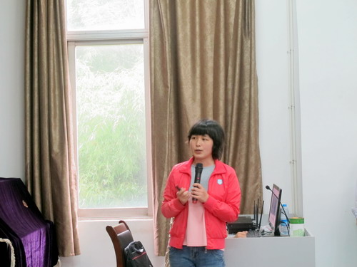 九江善水科技有限公司总经理、化环学院优秀校友吴秀荣上台致辞,讲话中对此次学术报告会的召开表示祝贺,对回到母校感到非常激动,也十分欢迎学院老师到善水科技考察合作,师弟师妹就业选择善水科技。