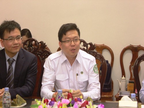 6月9日,贵州师范学院校长李存雄一行6人(文学院院长吴俊、杨荫冲、对外交流合作处梁瑞副处长、教育科学学院郑玉莲副院长、历史与社会学院李忠峪副院长)到访柬埔寨王家研究院孔子学院,柬埔寨王家研究院院长、孔子学院理事长克洛媞达院士(H.E. KHLOT Thyda),孔子学院院长、参议院顾问谢莫尼勒阁下(H.E. CHEA Munyrith),中方院长帅式毅热情接待了到访人员。
