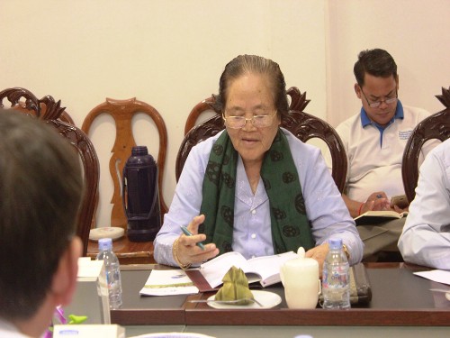 克洛媞达院士致辞欢迎贵州师范学院代表团的到来。她指出,中柬两国关系源远流长,是老朋友、真朋友,教育是推动社会进步、经济发展的强大力量,师范学院有着更重要的作用。谢莫尼勒阁下介绍了柬埔寨王家研究院孔子学院的发展历史、师资队伍的结构和建设、科学研究的质量和水平等。帅式毅院长详细介绍了孔子学院的汉语教学情况及近年来取得的成就,并赞赏贵州师范学院是4月份在孔子学院举办留学中国(贵州)教育展后首个来访并落实有关项目的高校。