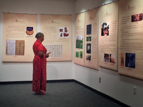 在孔子学院汉语教师精心布置的大气而又喜庆的“丝绸之路”展厅里,来宾们通过观看一幅幅图文并茂的展板,了解了丝绸之路的历史和中国养蚕制丝的工艺技术,同时也感受到了多元文化在丝路上的碰撞、交融与传承。