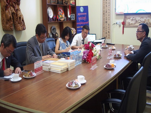 本次江西人民出版社在克洛媞达院长的邀请下到访柬埔寨王家研究院孔子学院,旨在加强中柬双方之间的出版业合作,商谈在柬埔寨合作建立出版社的可行性。(洪姗)