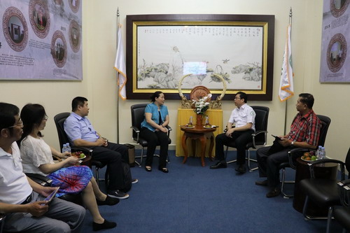4月21日上午,中国广西师范学院副校长邓艳葵一行访问柬埔寨王家研究院孔子学院,孔子学院院长谢莫尼勒(H.E.CHEA Munyrith)阁下、院长助理陈晶雯老师热情接待了邓艳葵副校长一行,双方在会议室进行了交谈。