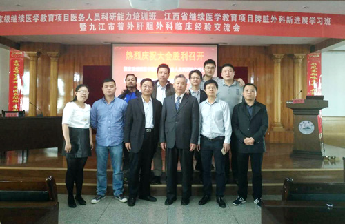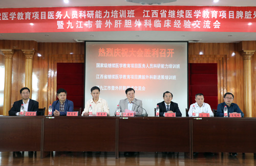 4月29日上午,由临床医学院/附属医院主办的国家级继续医学教育项目医务人员科研能力培训班、江西省继续医学教育项目脾脏外科新进展学习班暨九江市普外肝胆临床经验交流会在临床医学院/附属医院隆重召开。本次会议邀请了美国印第安纳大学终身教授谢经武教授、中山大学附属第一医院肝胆外科博士生导师汪谦教授、南昌大学附属第一医院胃肠外科李正荣教授到会授课。临床医学院/附属医院院长张志平教授、副院长胡志坚教授,基础医学院副院长汪鑫教授、九江市卫计委科教科王俊珠科长等出席开幕式。开幕式由副院长李春平教授主持。