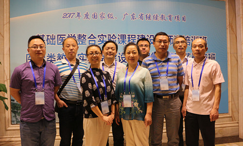 5月25日-5月28日,国家级继续医学教育项目“基础医学整合实验课程建设暨师资培训班”与“医学类教学实验室建设实验教学改革研修班”在广州市顺利开班,本次培训班由广州中医药大学基础医学院主办,参加培训班学习的学员有来自全国多所大学的医学院、教学医院、医疗服务机构及人民卫生出版社等共计80多个单位和 300余人参加。广州中医药大学基础医学院党委书记洪创雄教授主持了开班仪式,九江学院基础医学院副院长郑美蓉教授以及基础各学科教师共计9人参加了此次培训班的学习。