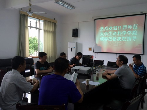 6月20日下午,江西师范大学生命科学学院党委书记胡华清和副院长邹峥嵘、谢建坤等一行5人来药学与生命科学学院开展研究生招生宣传活动,药生学院副院长鲍海鸥、团委书记徐常龙等人在心远楼413接待了胡书记一行人,大家就学生考研、专业建设等相关问题进行了交流探讨。