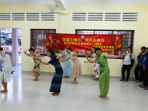 柬埔寨孔子学院吴哥高中孔子课堂举办“汉语心连心,同庆孔院日”活动