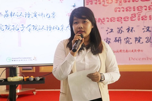 苏碧娜院长在讲话中表示,随着中国国际影响力的提升和对外交流的不断发展,汉语已成为世界第二大通用语言,成为一门深受各国人民喜爱的“全球性”语言,柬埔寨的“汉语热”也在持续升温。“江苏杯”演讲比赛给众多柬埔寨汉语学习者和爱好者提供了一个交流学习、共同提高汉语的机会,为大家打开一个了解江苏、了解中国文化的窗口。苏碧娜院长鼓励选手们好好表现,秉持“友谊第一,比赛第二”的原则多学习、多锻炼、多成长,并祝贺本次比赛能够取得圆满成功。