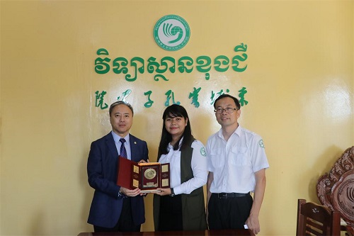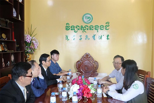 12月4日,华侨大学曾路副校长在国际交流合作处处长赵新城、华文学院院长胡培安的陪同下,访问了柬埔寨王家研究院孔子学院。孔子学院中方院长夏修龙教授、柬方院长苏碧娜女士(VUTH Sopheakna)热情接待了来宾。