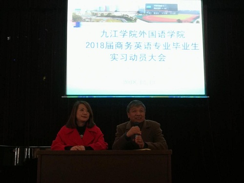 为使2018届商务英语毕业生更好了解毕业实习的重要性,做好实习的充分准备,12月6日下午,外国语学院商务英语教研室于香远楼一楼报告厅召开了2018届商务英语毕业生毕业实习动员大会。外国语学院副院长柴克清,商务英语教研室主任章志红以及实习指导老师们出席了这次动员大会。