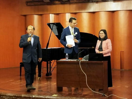 应成都捷克领事馆和四川音乐学院的邀请,12月8日下午3点,我校艺术学院理查德∙波尔博士与王荇荇博士在四川音乐学院的聂耳音乐厅举办了两个半小时的交流讲座,成都捷克领事馆的Tomas Hlavan先生、钢琴系副主任杨成刚教授等出席了讲座。