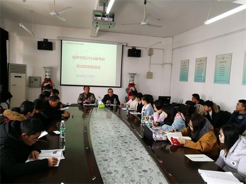 为解决研究生复试阶段实际难题,提高2018届研究生录取率,3月8日下午,化环学院在向学楼五楼会议室举办研究生复试指导与调剂座谈会。学院党委书记刘新强、副院长曹小华、专业负责人、毕业班班主任、辅导员及2018届全体考研学生参加座谈会,会议由曹小华主持。