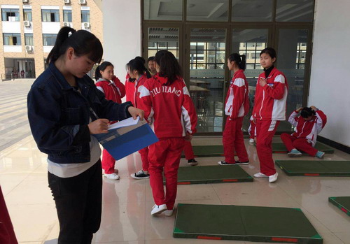 应我校实习基地九江市港城中学的邀请,3月27日,体育学院选派体育教育专业B1511班16名同学,来到港城中学,协助该校进行体育中考模拟测试活动。