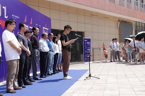 6月11日上午,艺术学院在艺术楼展厅广场举行2018届毕业作品展开幕式。艺术学院党委书记王春生、院长吴维勇、副院长虞斌、党委副书记沈杨出席,我院师生代表300余人参加。开幕式由艺术学院环艺教研室主任吴小亮主持。