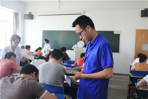 考试期间,考务人员工作认真负责,考试流程井然有序。各位考官执考严谨认真、明确责任、掌握标准、分工协作,克服了时间长、强度高、连续工作无休息的困难,对来自全市各级医疗机构的考生进行了包括病史采集、病例分析、基本技能、体格检查、多媒体上机的执考。几天的考试组织有序,考风考纪良好。