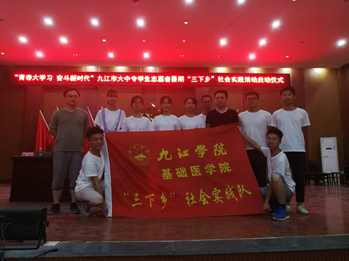 7月6日,基础医学院暑期三下乡社会实践团队赴官莲乡参加九江市大中专学生志愿者暑期“三下乡”社会实践活动启动仪式。