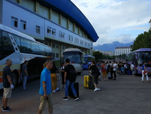 8月31日早上7点30分,参加支教的同学们准时到达集合点,在每辆车随车带队教师的指引下,找到自己所去县(市区)的大客车,摆放行李,有序登车。实验中心方向明主任、教务处师范科杨泽明科长到集合出发点协调指挥,并为支教学生送行。8点整,车队准时出发分别前往各县(市区)教育局。