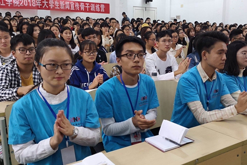 10月13日下午,我校大学生新闻宣传骨干训练营在文理实验楼117报告厅正式开营。校党委委员、党委宣传部部长冯健出席开营仪式并致辞,党委宣传部大学生新闻中心指导老师及全体学生记者、各二级学院学生新闻工作者300余人参加了开营仪式。