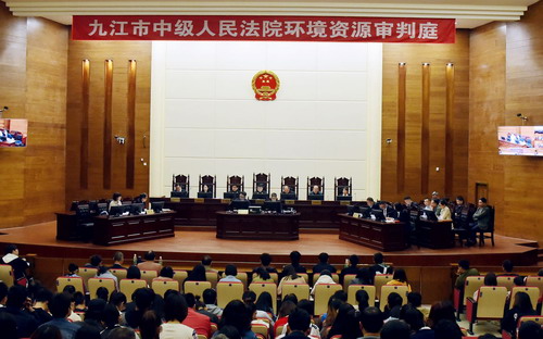 本案是九江市中院公开开庭审理的首例由社会组织提起的环境民事公益诉讼案。本案原告北京市丰台区源头爱好者环境研究所是2012年6月在北京市丰台区民政部门注册登记的社会组织。因该案是九江首例社会组织提起的环境民事公益诉讼,社会关注度较高。环保公益组织志愿者、当地村民代表和部分新闻单位记者及我院师生参加了旁听。九江中院通过网络直播系统全程直播了案件的审理过程,有1.2万人次在线观看了此次直播活动。
