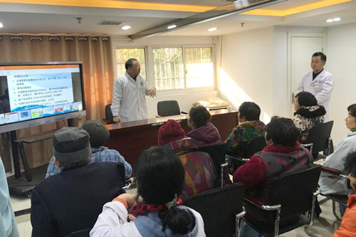 但传军主任用通俗易懂的语言为前来参加讲座的社区居民介绍了胸痛的宣言、急性胸痛的表现、胸痛发生如何打急救电话、如何家庭急救等知识,并用动画方式告诉社区居民心肌梗死的最佳救治流程。但主任还对卒中防治相关知识进行了讲解,重点讲授了中风的多项危险因素、识别中风的方法、遇到中风患者如何家庭急救等内容。