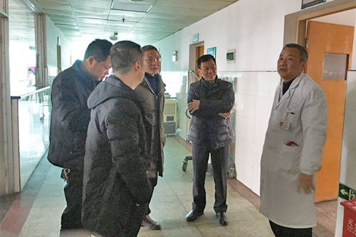 占副院长一行在附属医院重症医学科主任叶兴文的引导下,参观了该院隔离病房、普通病房、供药室等处,对医护人员专用通道、门禁系统等基础设施及不同的功能分区进行了解,对病房设施的特殊要求进行了实地查看。随后双方对病房建设与管理事宜进行了沟通交流。