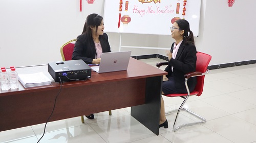 作为任课教师,来自柬埔寨皇家科学院孔子学院的甘敏副教授对“柜面服务汉语展示”活动进行了点评总结。甘敏老师对同学们良好的表现表示满意,并着重强调了规范、有序的商务汉语在工作中的重要性。此外,她还鼓励同学们继续认真努力地学习汉语,为加华集团的发展、柬埔寨的经济建设贡献自己的一份力量。