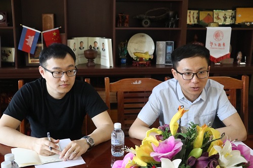 会上,双方还就孔子奖学金工作的开展情况以及柬埔寨学生去中国留学的形式等问题展开讨论。柴克清院长和苏文鹏老师一致认为,柬埔寨皇家科学院孔子学院的汉语教学工作现已取得很大成就,下一阶段我们可以寻求与国际学校合作,推进汉语教学学分制。在孔子学院各类型教学点要建立我们自己的特色,要继续坚持并且持续做大不放手。