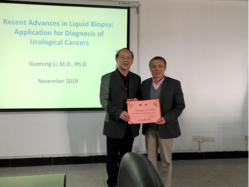 为加强与国外院校的学术交流合作,基础医学院近日邀请法国圣埃蒂安大学李国荣教授来到基础医学院科研中心,与基础医学院相关老师进行了专题学术交流。