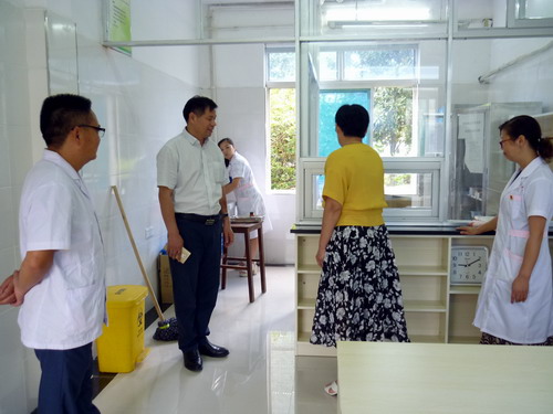 9月2日上午,校医院院长贾宗林,副院长江满珍、钟志刚、医务科陈强盛主任一道分别到浔东校区、八里湖校区,对新学期开学前各项准备工作进行了检查。