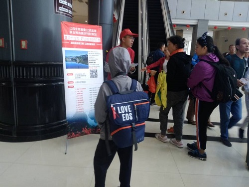 为了展示江西庐山美景,帮助游客更好的了解庐山,江西旅游发展委员会联合江西五套一起举办了“喜迎十九大,江西风景独好”活动”,艺术学院青年志愿者服务队的志愿者们利用自己的假期时间积极参加活动,用自己的行动来服务社会。